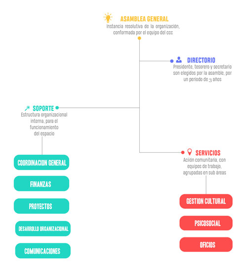 Ser un espacio de formación y de desarrollo integral al servicio de la comunidad que promueva el respeto de los derechos humanos y del medioambiente, el trabajo cooperativo y la educación popular en la búsqueda de la transformación social.ver organigramaObjetivo general